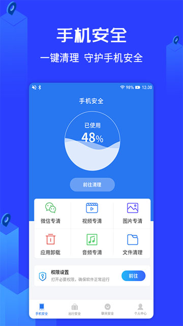 手机安全清理助手是我们团队倾心打造的一款集手机安、出行安全、聊天安全为一体的产品,我们严格按照国家要求,尽可能的不去获取用户非必要的权限,对于获取的权限我们也全力保证其使用安全,对接入的SDK,我们也认真核查。我们敢于承诺,绝不会窃取用户信息.